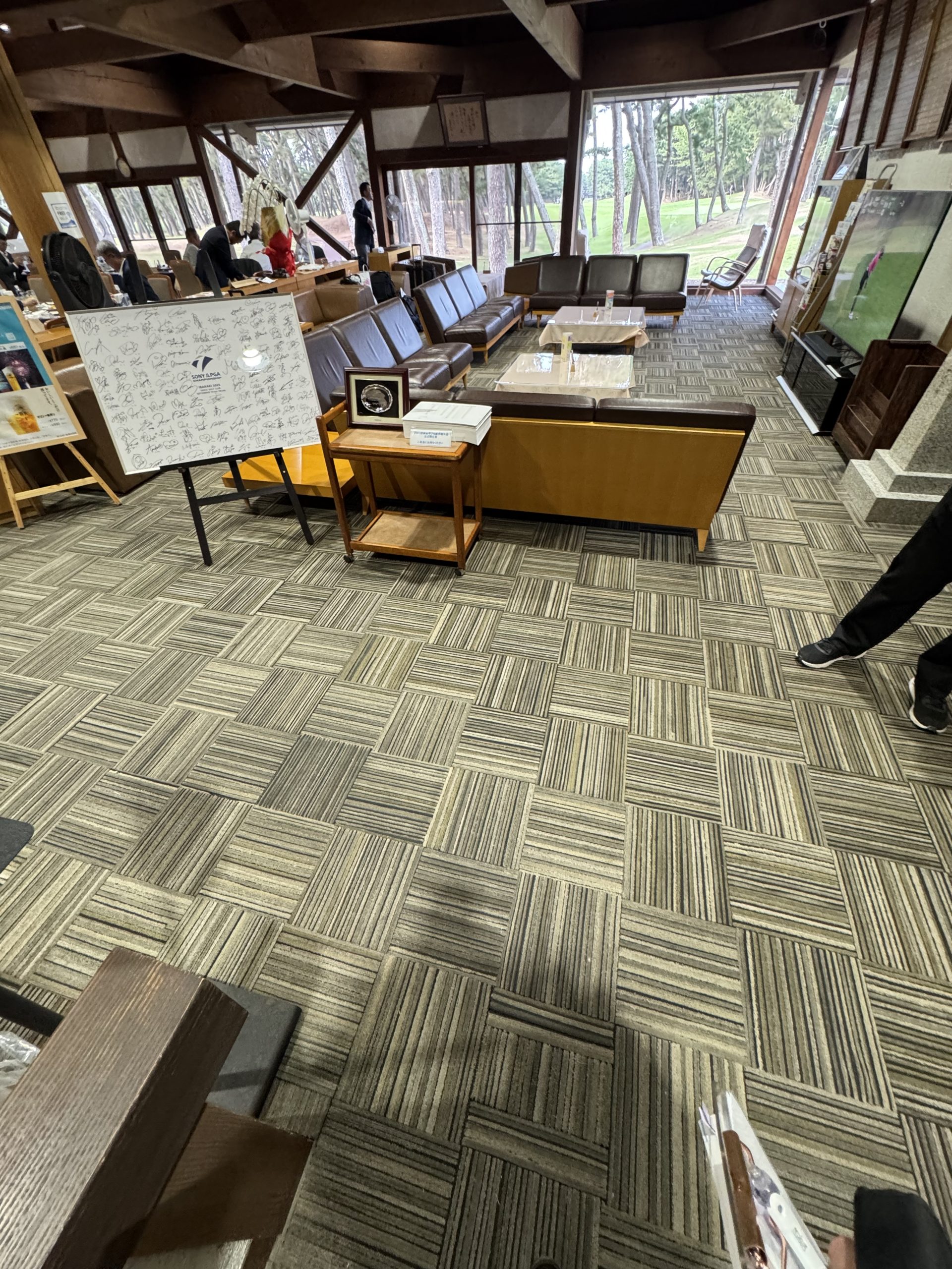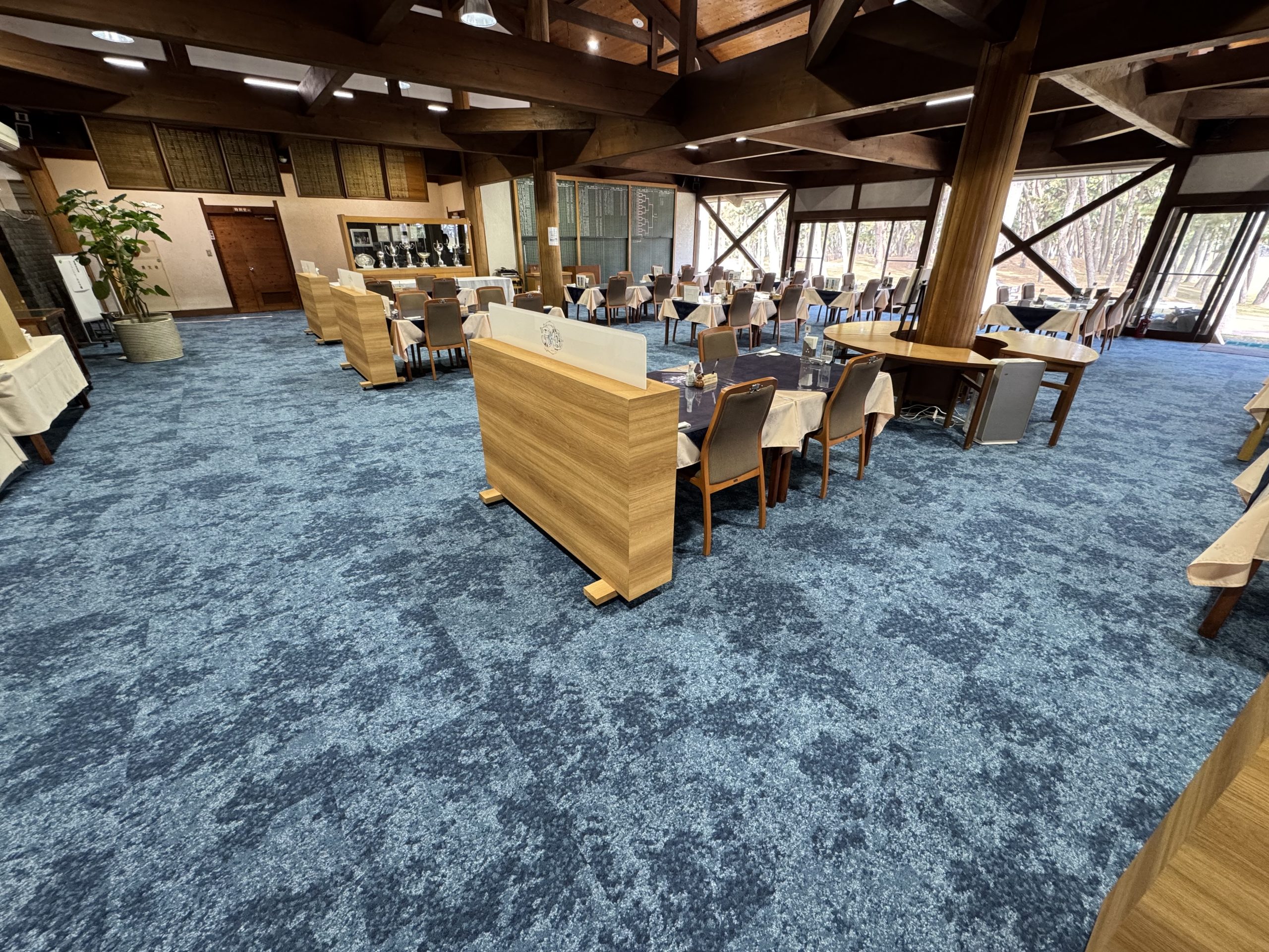 海沿いのゴルフ場だった為、タイルカーペットは海をイメージしたカラーをご選定いただき、色鮮やかで高級感のある仕上がりとなりました!